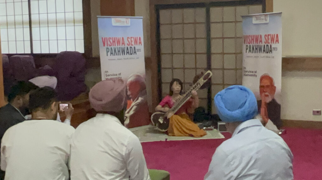 そうして光圓寺に、インド人が集まりました。約30人程でしたが、当方としても初めての経験。本堂で「インドの皆さん、そしてモディ首相、今日参拝の皆さんのご健康とご先祖さまのご冥福をお祈りします」とお勤めしました。(当日は代々木公園で、インド関連の大規模イベントが行われていたそうです)。その後シタールの演奏(日本人奏者)もあり、一階で会食(軽食)となりました。